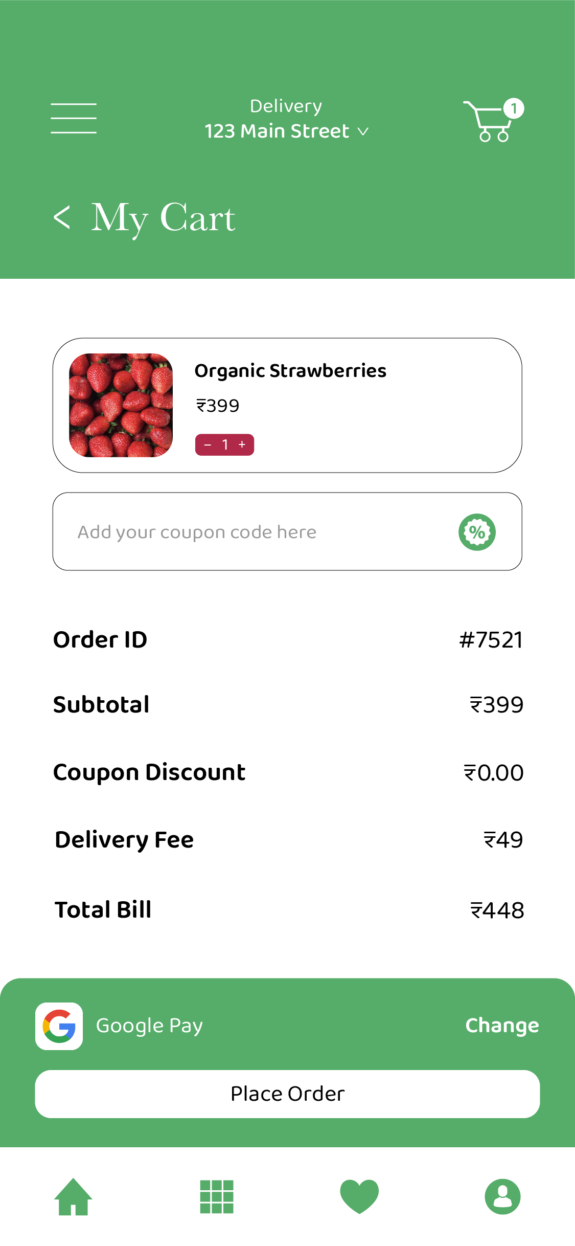 Checkout is simplified to reduce friction while still giving users confidence in timing, items, and delivery status. The goal is reassurance, not novelty.