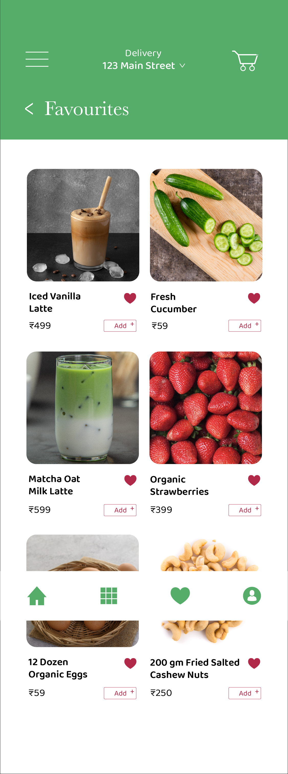 If this concept moved into implementation, the next step would be validating the final flows through usability testing, especially around ingredient transparency, beverage customisation, and delivery tracking. I would also test how recommendations and favourites support long-term grocery routines without making the experience feel overly algorithmic.
