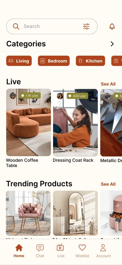 Use clean, aesthetic interaction patterns on the home & live pages to increase engagement, usability, & retention.